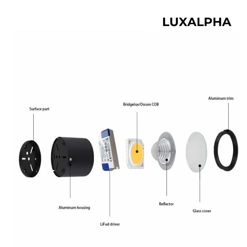 Có nhiều kích cỡ khác nhau: 3,5 inch, 4 inch, 5 inch, 6 inch và 8 inch, và các tùy chọn công suất bao gồm 10W, 15W, 20W, 30W, 40W, 50W, 60W và 70W với Chip LED COB CRI90 cho công suất phát sáng cao. Là giải pháp tốt nhất để thay thế bóng đèn tròn GU10/E27/PL truyền thống. Ngoài ra, nhờ công suất và độ sáng cao, đèn là giải pháp chiếu sáng thương mại và công nghiệp tốt nhất ở những không gian như siêu thị, nhà ga, ga tàu điện ngầm và nhà kho có trần cao